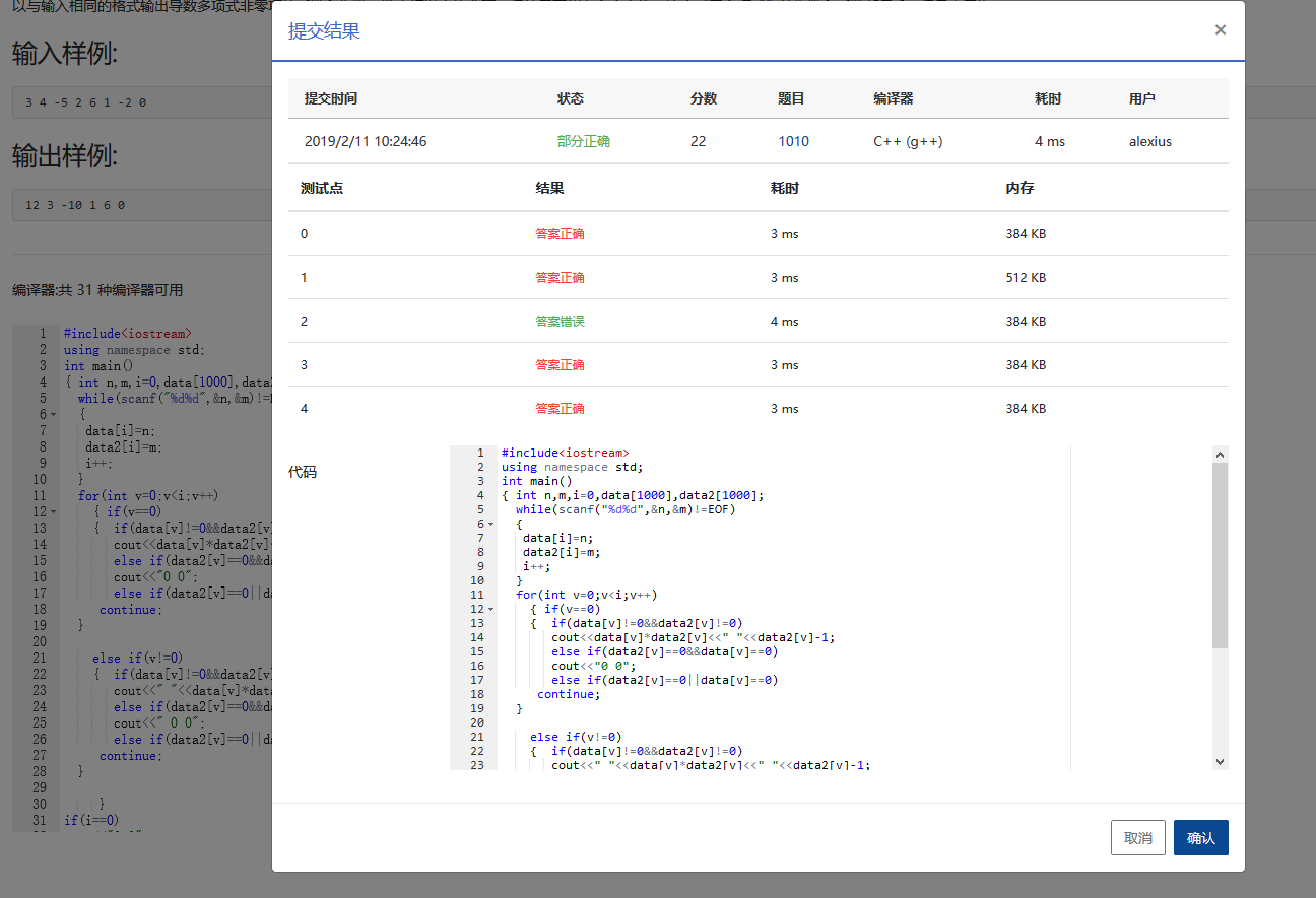 总结:这题看似简单其实有坑比如指数和常数项有一个为0的时候会跳过,但打印输出的时候要注意这时不能打空格 ,这题还有一个测试点过不去头疼。
