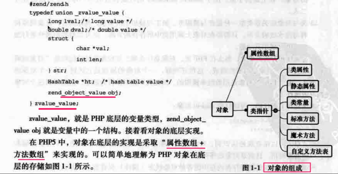 在PHP5中,对象在底层的实现是采用 '属性数组 + 方法数组' 来实现的。