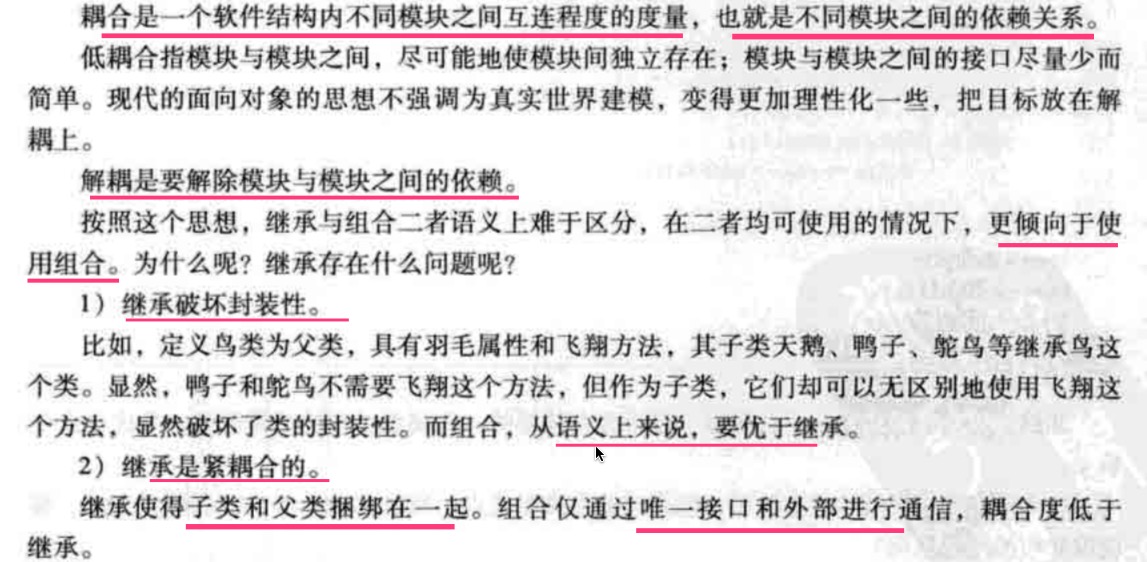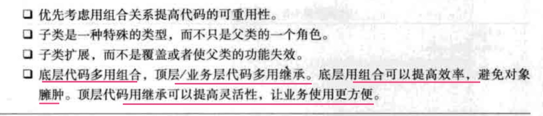 4.底层代码多用组合,顶层/业务层代码多用继承。底层用组合可以提高效率,避免对象臃肿。顶层代码用继承可以提高灵活性,让业务更方便。