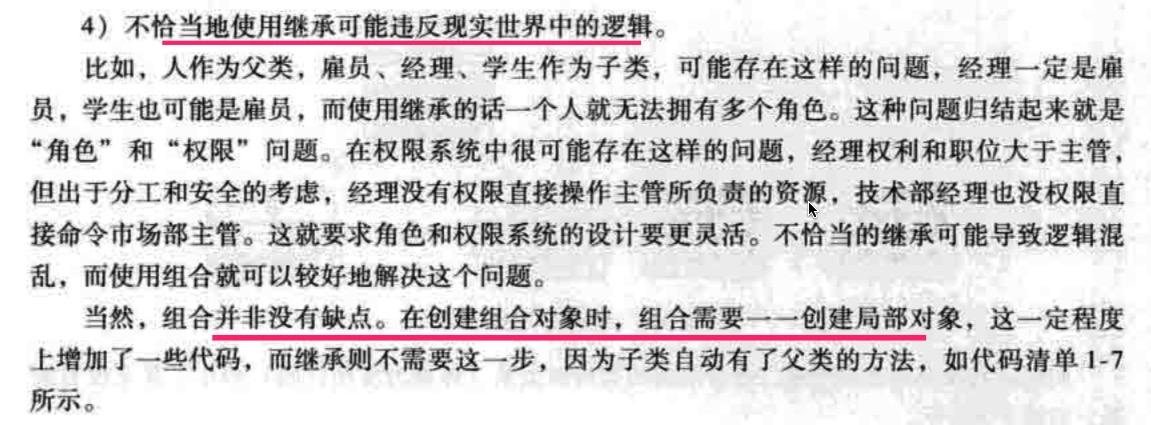 在创建组合对象的时候,组合需要一一创建局部对象。组合比继承增加了代码量。