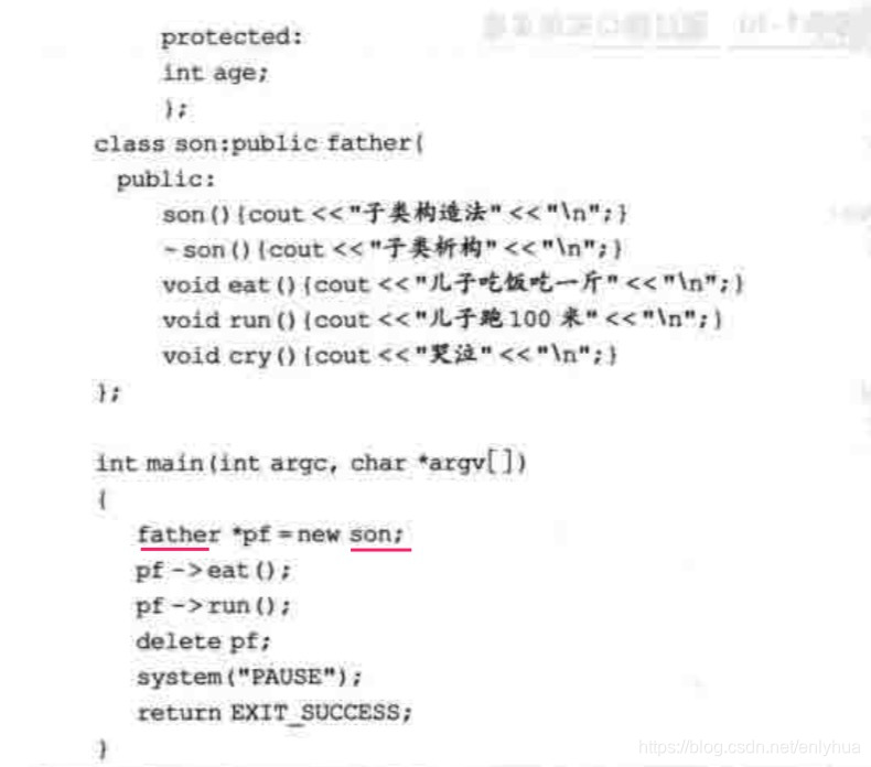 C++ 中的多态,定义一个父类,然后定义一个子类,这个子类继承父类的一些方法并且有自己的方法。通过 father *pf = new son; 语句创建一个