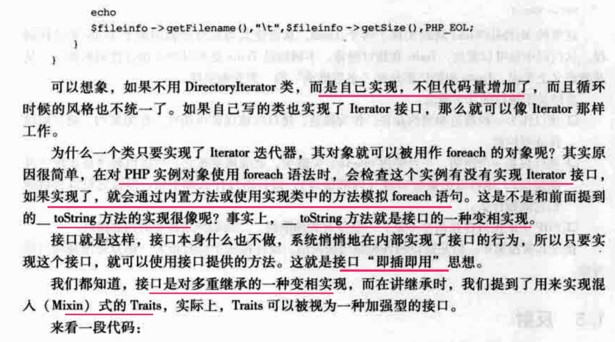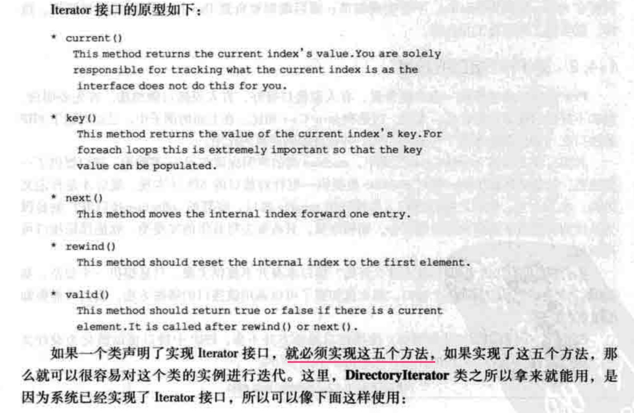 Iterator 接口,如果实现了,就会通过内置方法或者使用实现类中的方法模拟 foreach语句。这和 __toString() 很像,事实上,__toString()方法就是