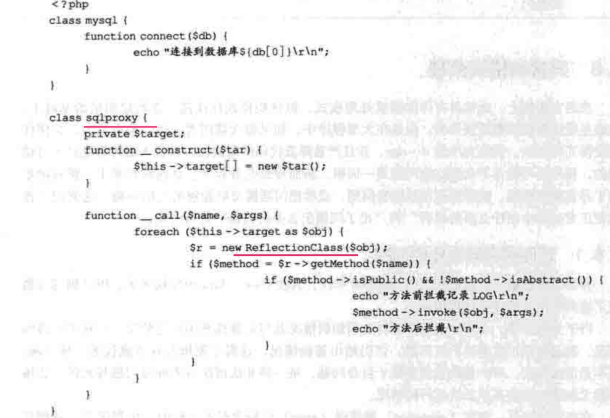 这里真正操作的类是 mysql,但是 sqlproxy 类实现了根据动态传入参数,代替实际的类运行,并且在方法前后进行拦截,并且动态的改变了方法和属性。这就是