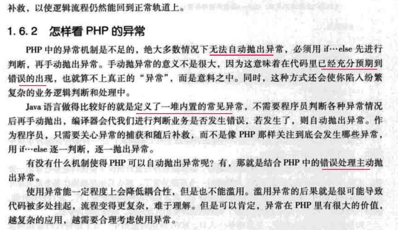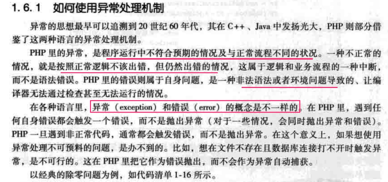 PHP 里的异常,是程序运行中不符合预期的情况以及正常流程不同的状况。异常和错误是2个不同的概念。