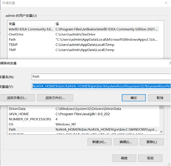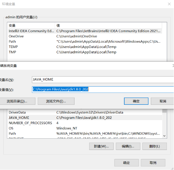 1)新建JAVA_HOME,变量值为【C:\Program Files\Java\jdk1.8.0_202】注意:变量值为JDK的安装路径。