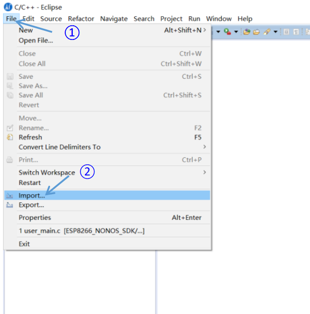 打开IDE,File -> Import 导入工程。