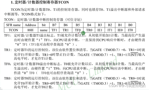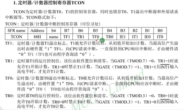 首先是启动定时计数器,怎么去启动他来。通过特殊功能寄存器TCON来启动。