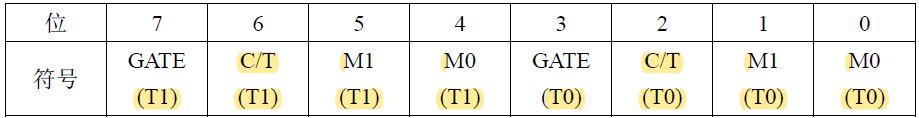 表 5-4 TMOD——定时器模式寄存器的位分配(地址 0x89、不可位寻址)