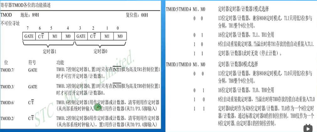 然后是设计定时计数器的工作模式 ,通过TMOD特殊功能寄存器。