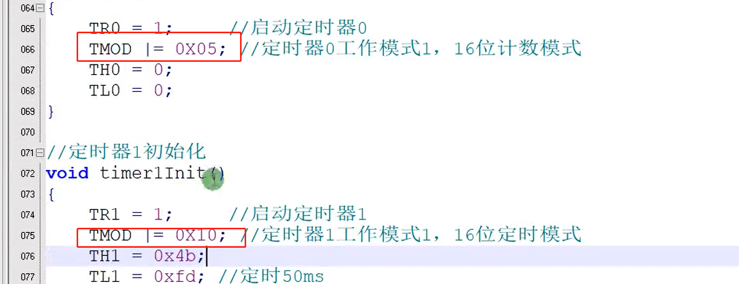 看 TR1,当我们程序中写 TR1 = 1以后,定时器值就会每经过一个机器周期自动加 1,当我们程序中写 TR1 = 0以后,定时器就会停止加 1,其值会保持不变化。