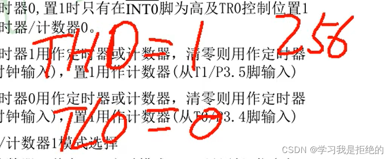 TR0:该位由软件置位和清零:就是说由编程去给他赋值1还是赋值0;