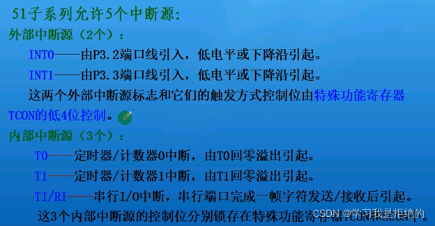 只要写到硬件置 1 或者清 0 的,就是指一旦符合条件,单片机将自动完成的动作,只要写软件置 1 或者清 0 的,是指我们必须用程序去完成这个动作,后续遇到此类描述就不再另做说明了。