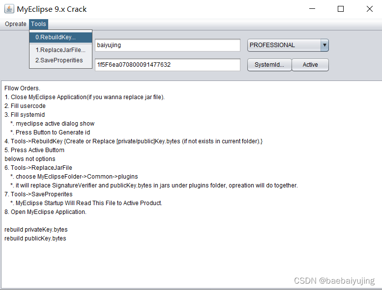 3、获取到 SystemId 后,点击菜单 Tools-0.RebuildKey ,然后点击 Active 按钮,将会看到 生产一串数字