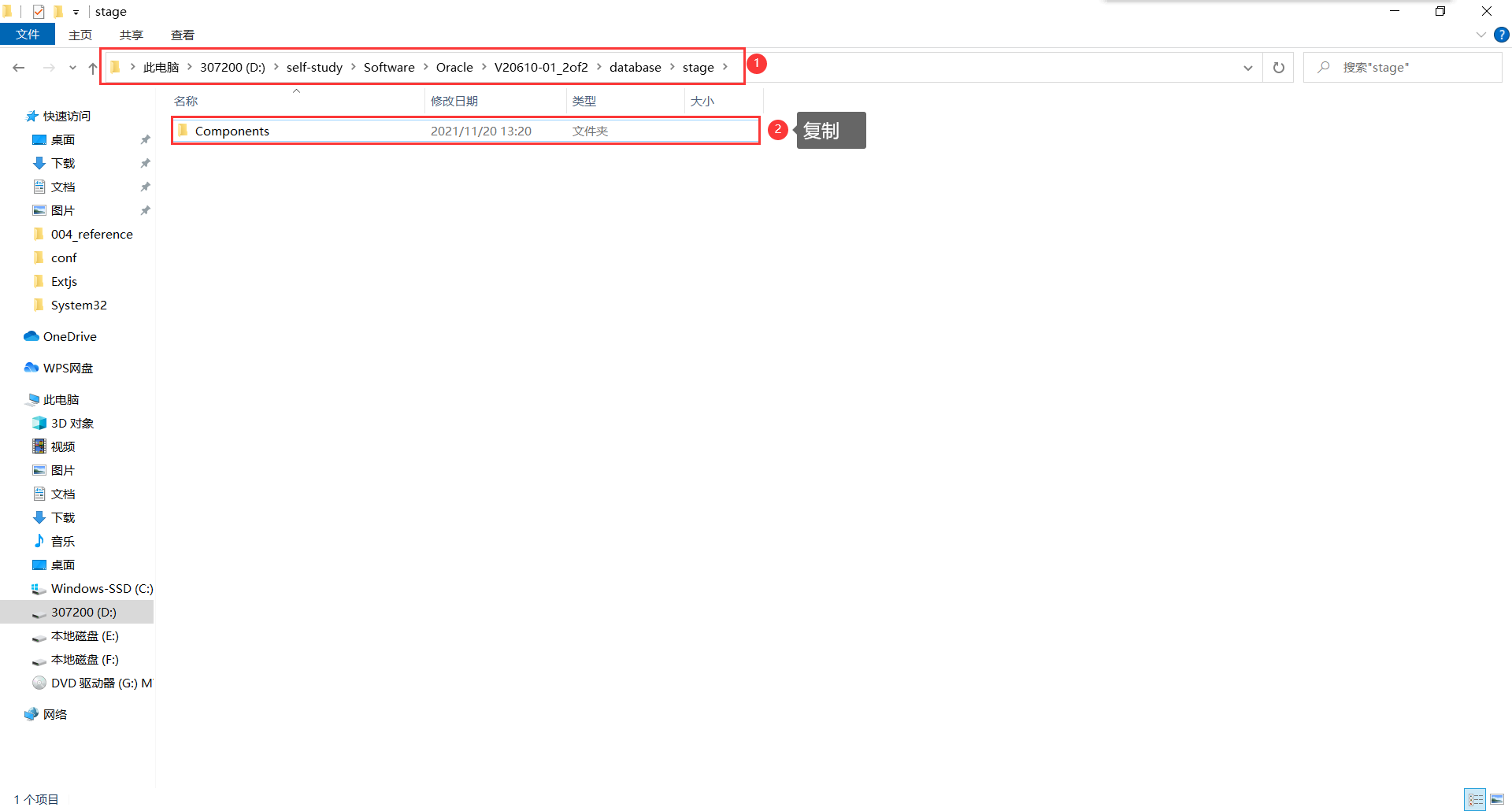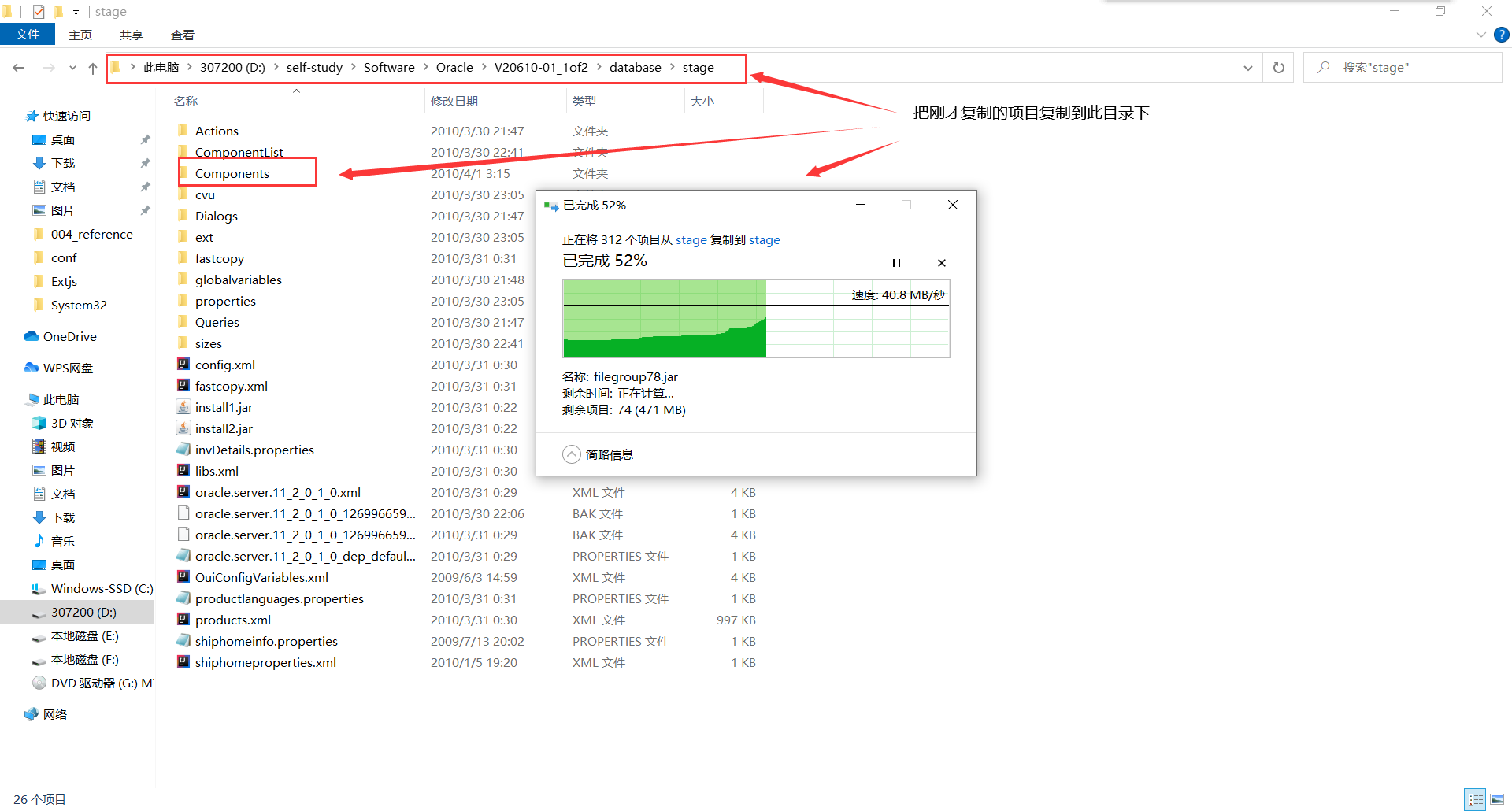把刚才复制的Components粘贴到D:\self-study\Software\Oracle\V20610-01_1of2\database\stage