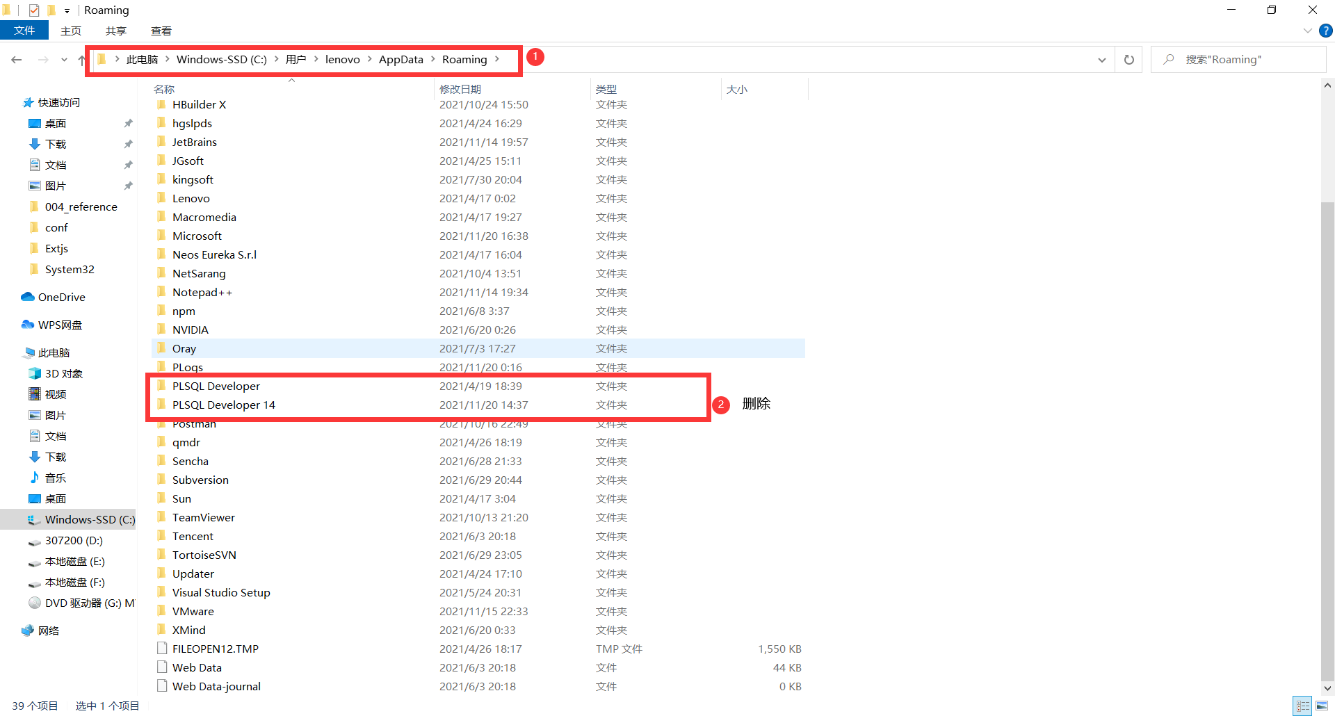 删除C:\Users\lenovo\AppData\Roaming用户下PL/SQL的目录
