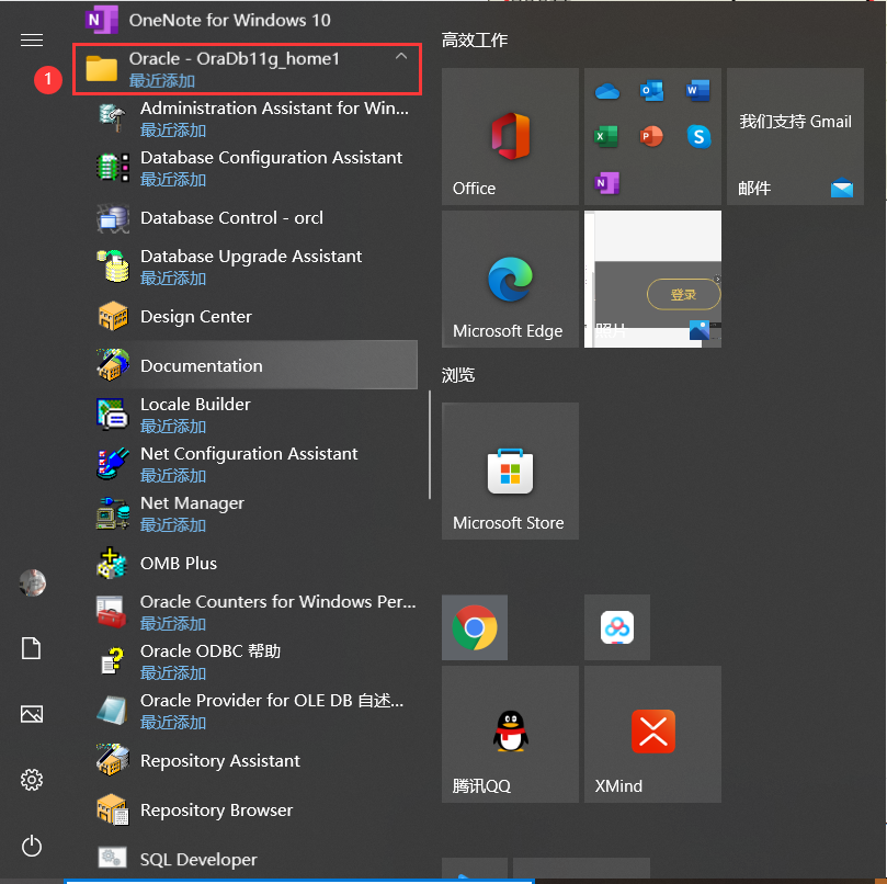 然后一路确定。在菜单找到Oracle - OraDb11g_home1