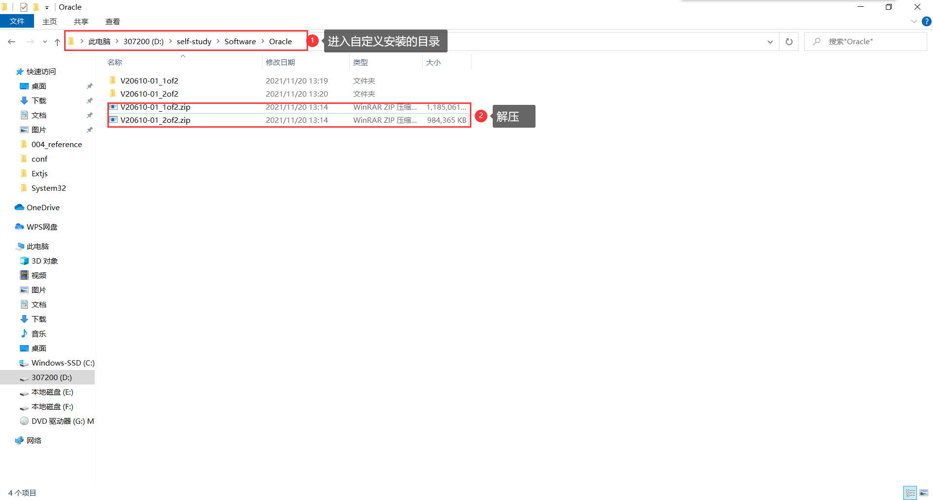 2.1:进入刚才Oracle.zip的安装位置