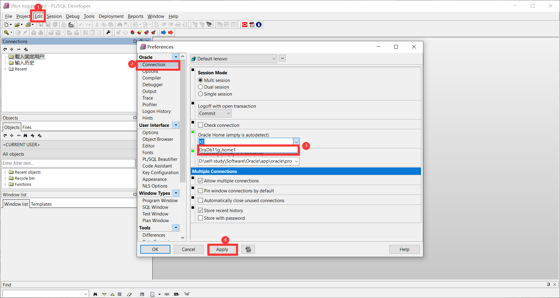 重新登录pl/sql出现以下界面: