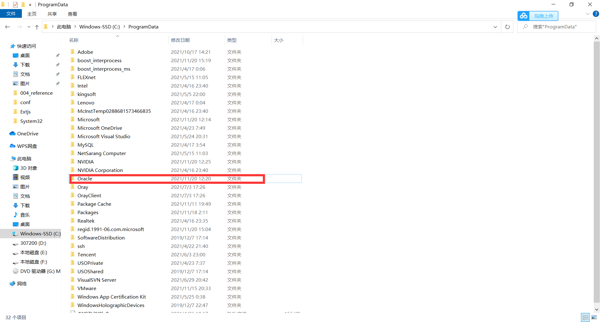 在 C:\ProgramData删除Oracle目录