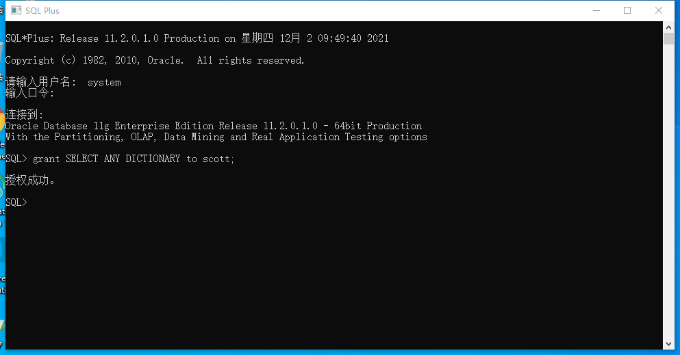 grant SELECT ANY DICTIONARY to username;//给用户授权动态性能视图