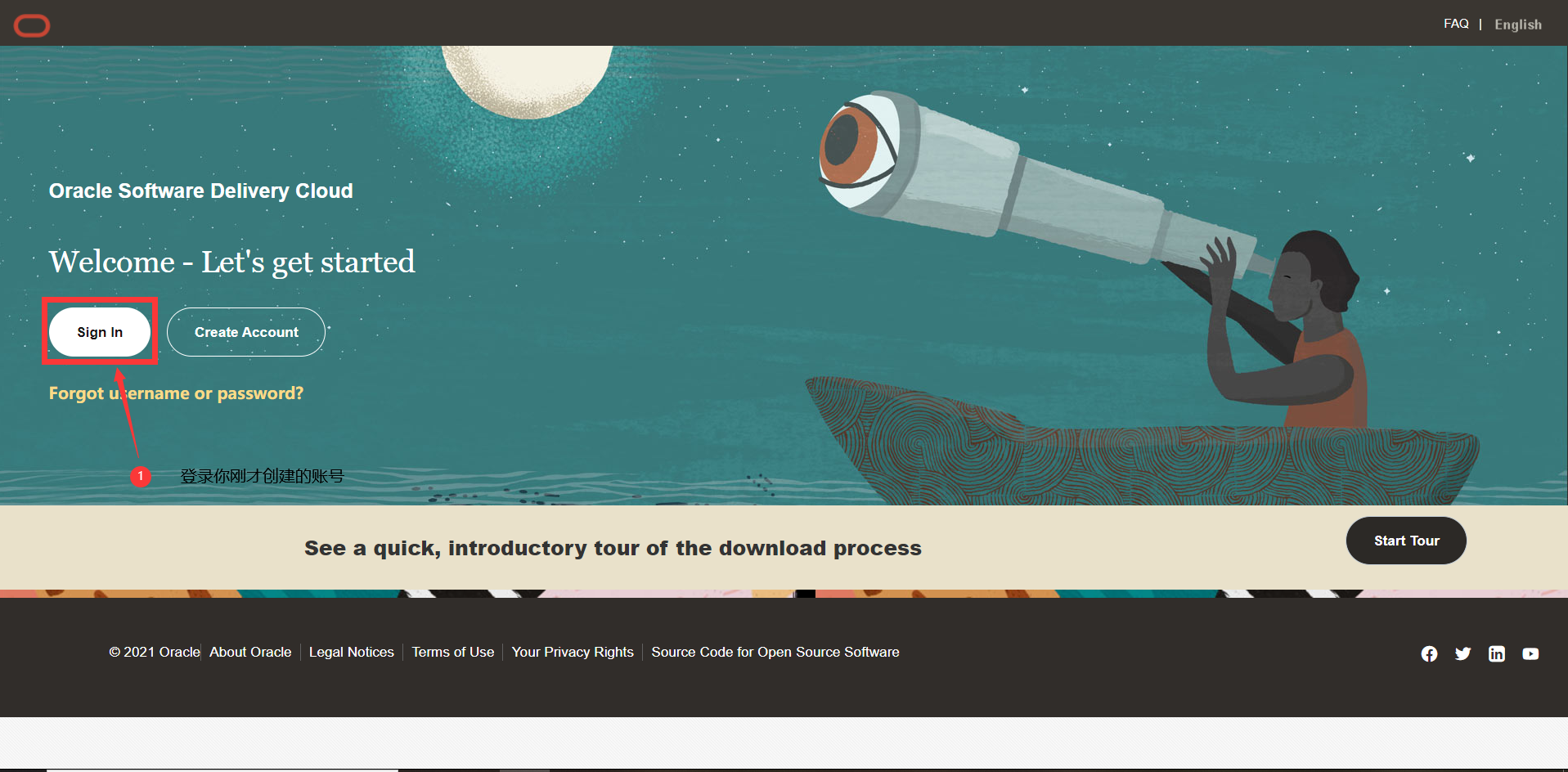 先注册一个oracle账户https://www.oracle.com/
