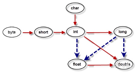 基本数据类型变量之间自动类型提升的运算规则。