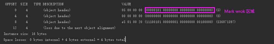-- 这里是匿名偏向,虽然还没有任何线程在该object上加锁,但是java默认给它加了一个匿名偏向,就相当于一个锁前的准备状态。