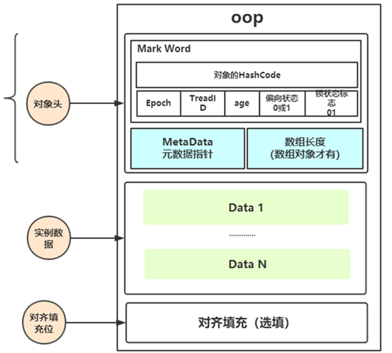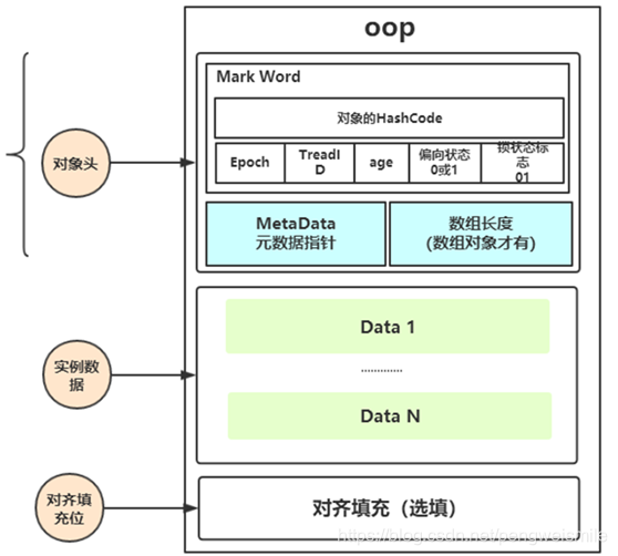 Mark word就在对象头中,下图是对象内存结构: