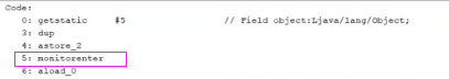 在汇编中Synchronized所包含的代码块会被翻译成下面2个命令来说实现锁的: