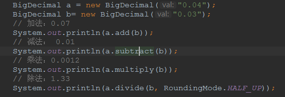 如果我们要做一个加法运算,需要先将两个浮点数转为String,然后够造成BigDecimal,在其中一个上调用add方法,传入另一个作为参数,然后把运算的结果(BigDecimal)再转换为浮点数。