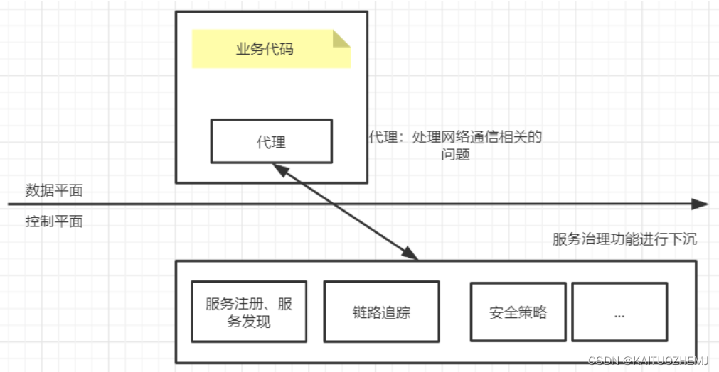 (1)最初是为了业务而写代码,比如登录功能、支付功能等,到后面会发现要解决网络通信的问题,虽然有 Spring Cloud里面的组件帮我们解决了,但是细想一下它是怎么解决的?在业务代码里面加上spring cloud maven依赖,加上spring cloud组件注解,写配置,打成jar的时候还必须要把非业务的代码也要融合在一起,称为“侵入式框架”;