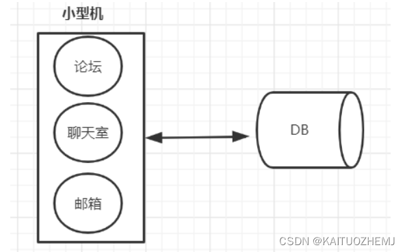 论坛业务、聊天室业务、邮箱业务全部都耦合在一台小型机上面,所有的业务数据也都存储在一台数据库上。
