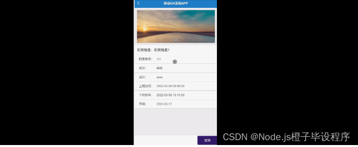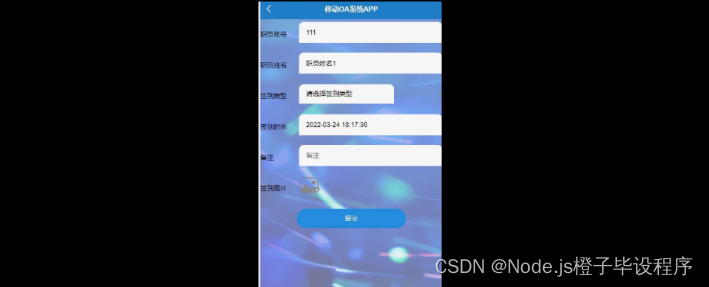 签到,职员可通过输入职员账号、职员姓名、签到类型、签到时间、备注、签到图片等内容进行提交等操作,如图5-13所示。