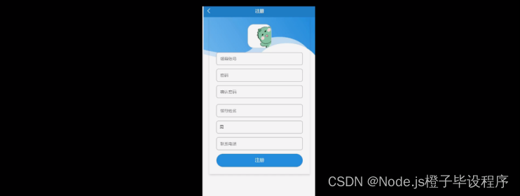 领导注册,领导通过输入领导账号、密码、领导姓名、性别、联系电话等内容进行注册,如图5-1所示。