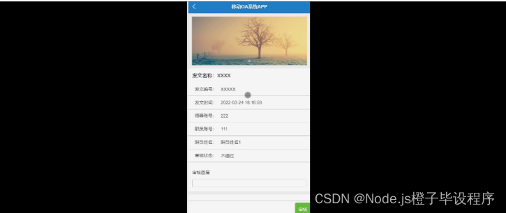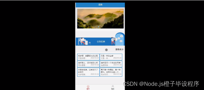 职员通过登录进入移动OA系统APP可查看首页、我的等内容,在首页还可查看公告信息等内容,如图5-8所示。