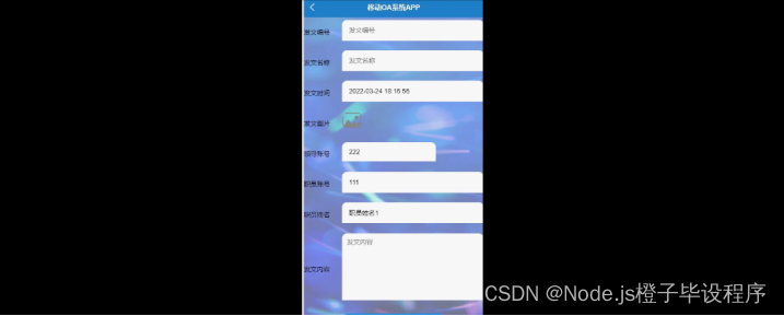 新增发文信息,职员可通过输入发文名称、发文编号、发文时间、发文图片、领导账号、职员账号、职员姓名、发文内容进行新增等操作,如图5-10所示。