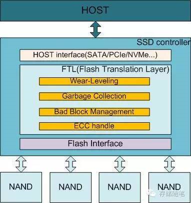 SSD主控主要有三大部分组成:与Host对接的界面(Host interface), 闪存转换层FTL以及闪存对接界面(Flash interface)。