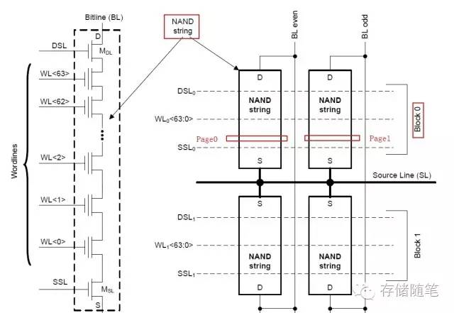 上图中右边有两个Page, Page0是由WL0与偶数BL交叉的Cell构成,Page1是由WL0与奇数BL交叉的Cell构成,