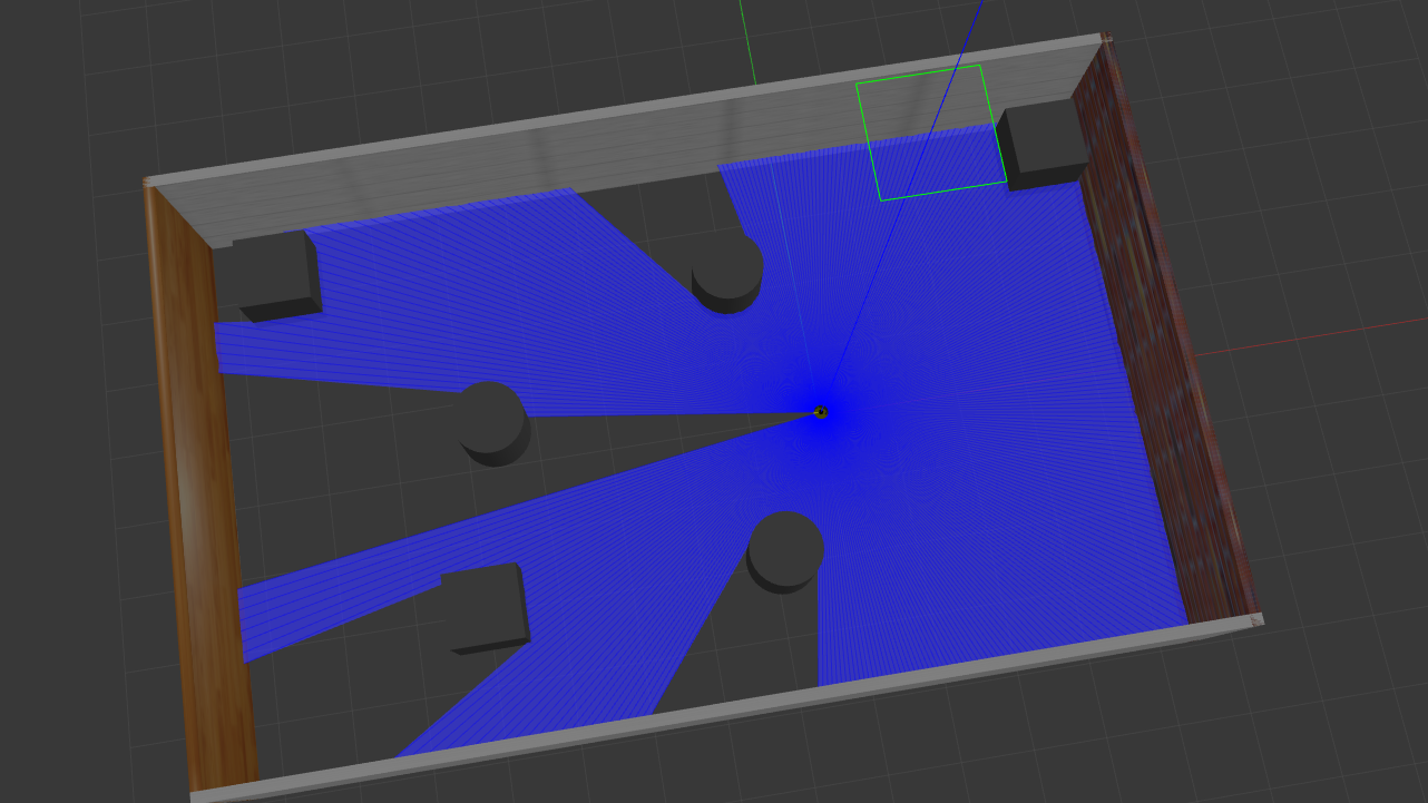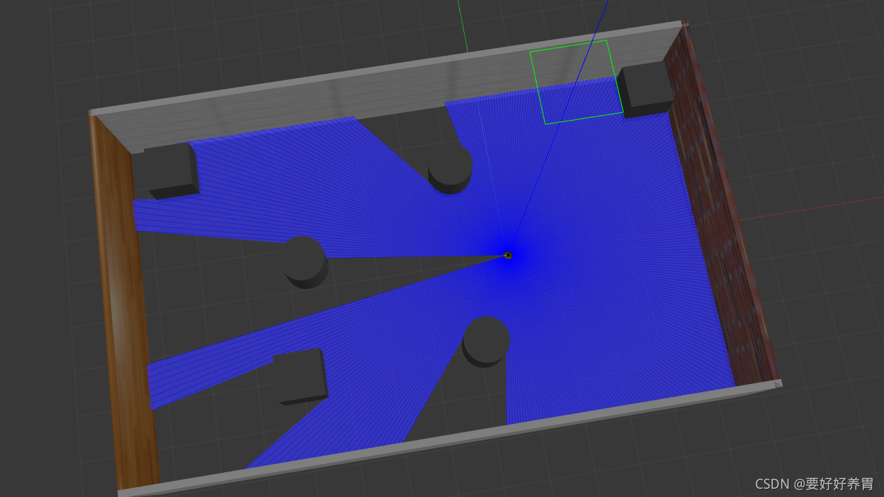运行gazebo看效果,能看到laser的激光射线