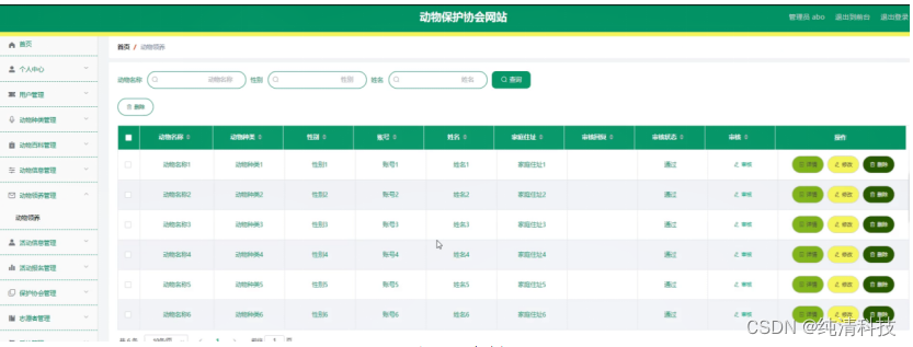 图5-11动物领养管理界面图