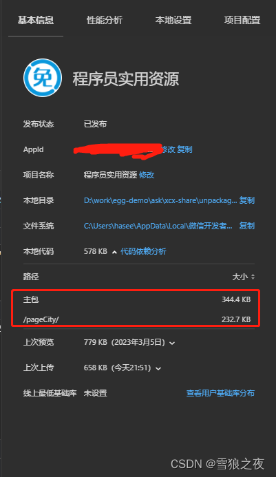 然后你看下开发者工具右上角那个详情,会打开像博主最上面那个图1,你看看是不是分包出来了、依赖出来了。