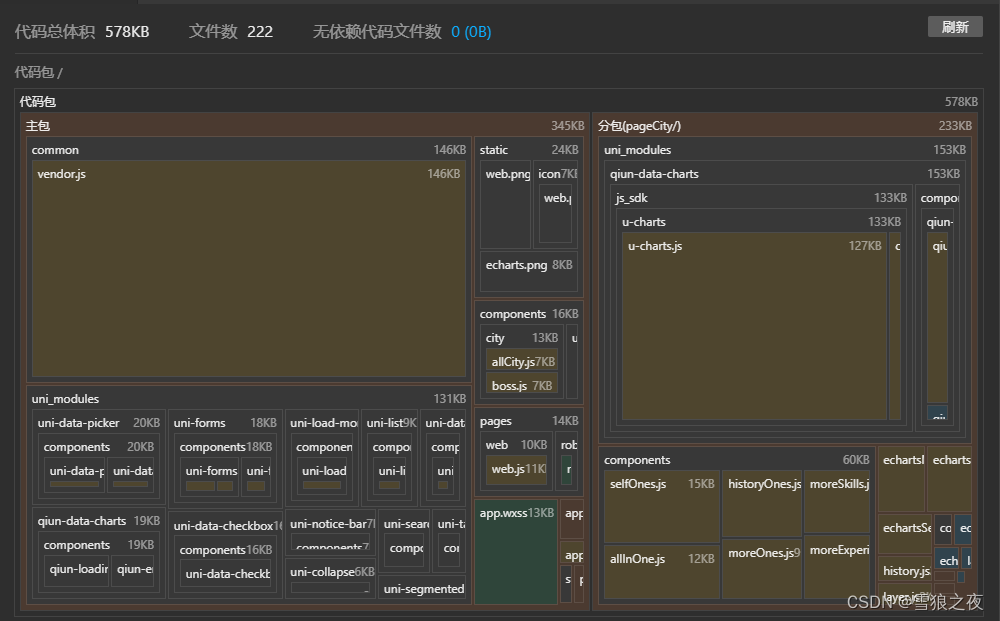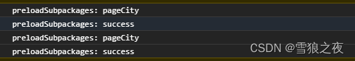那我就让他在进入pages/echarts/city 这个路由的时候,加载pageCity这个分包了,你运行成功的时候就会出来如下图,咱开发环境的时候会加载多次,正式线上环境在跑的时候就一次的!