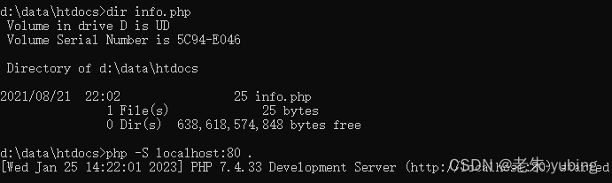 打开cmd窗口,cd到info.php所在的目录,输入php -S localhost:80 .