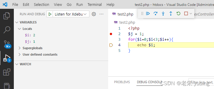 用vs code 打开要调试的php文件,点击行号左侧或者F9设置断点,点击启动调试按钮即可。