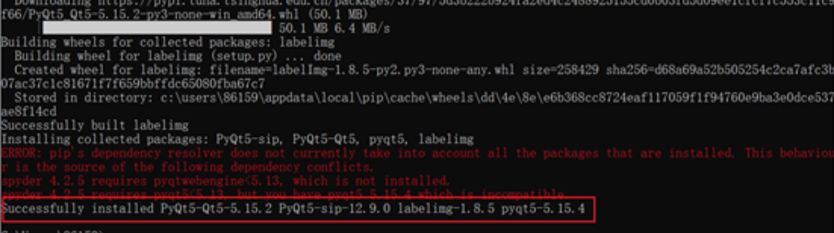 今天这篇博文完全就算分享我自己的惨痛教训的。我当时是安装labelImg,然后安装完成后出现了上述界面。我看见命令行有红色代码,大致看了代码意思。看到which is not install,这不就是包没有安装吗?然后我直接复制 Running pip as the 'root' user can result in broken permissions and conflicting behaviour with the system package manager. It is recommended to use a virtual environment instead: https://pip.pypa.io/warnings/venv 进行CSDN搜索,然后我运用超级权限安装了上述两个报红,没有安装的包。然后anaconda和labelImg图形界面就都打不开了,具体表现为:输入anaconda-navigator,然后返回段错误。当时百度搜索了好久,尝试在虚拟环境再次安装labelimg,labelimg都不能打开,我当时整个人都麻了。然后静心好好思考了一番,终于找出了问题所在。原因就在文章标题的那句话里面:简单来说,就算我安装了一个包与包管理器冲突的包,包管理器不就是conda吗,然后我把冲突的两个包卸载掉之后,anaconda和labelimg都可以用了。再具体说,就是conda中的spyder要求pyqt5的版本<5.13,然后我用超级权限强制安装了5.15的pyqt5,所以导致了冲突,所以我卸载5.15的pyqt5之后,anaconda和labelImg都可以正常使用了。