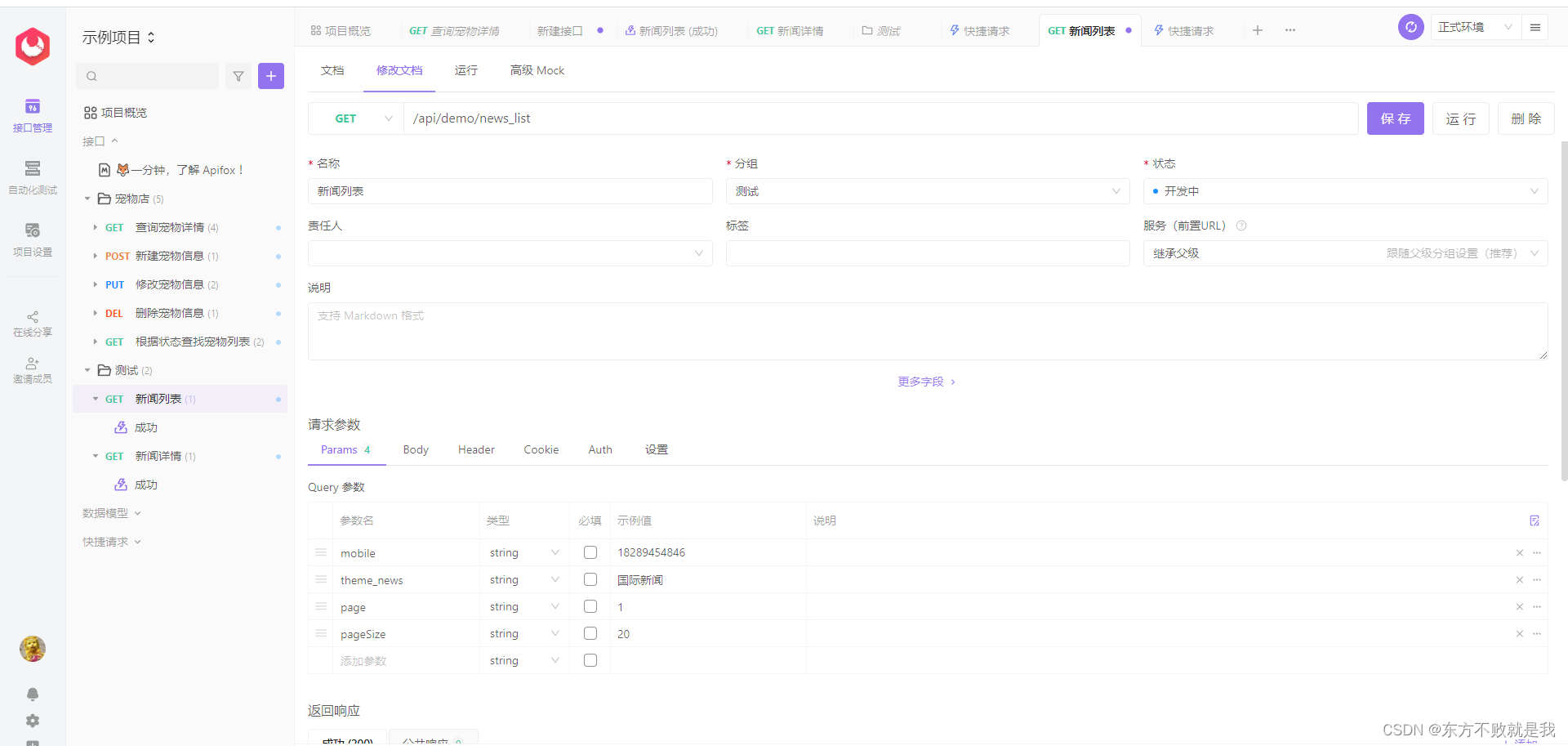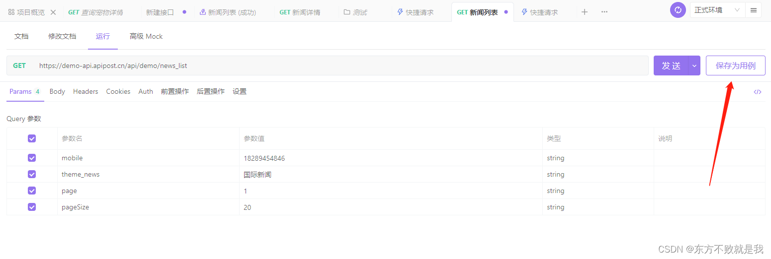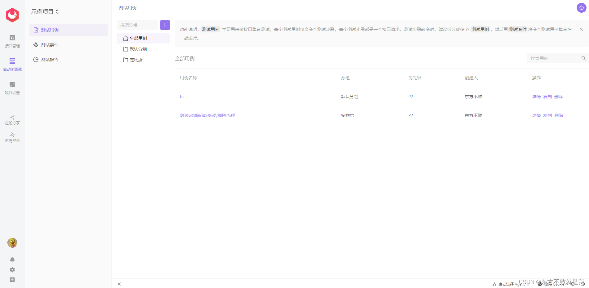 和apipost对比起来,apifox的功能更多。两者都是基于postman做接口管理,调试,但是apipost更原始一些,几乎单纯沿用了postman中API列表的概念。apifox在API列表的基础上,扩展可以将运行结果保存为用例,并且用例有一些固定的分类。