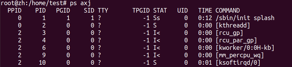 PPID PID PGID SID TTY TPGID STAT UID TIME COMMAND