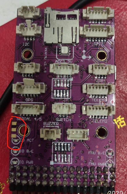 但这个引脚没有引出来,pixhawk2.4.8的引脚板子就在螺丝孔旁边,预留的三个接口,自己焊三条线接上就能从串口打印了