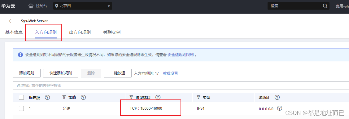 我不知道华为云配置放行端口(TCP : 15000-16000)之后,为何在服务器本地防火墙中,依旧显示是: