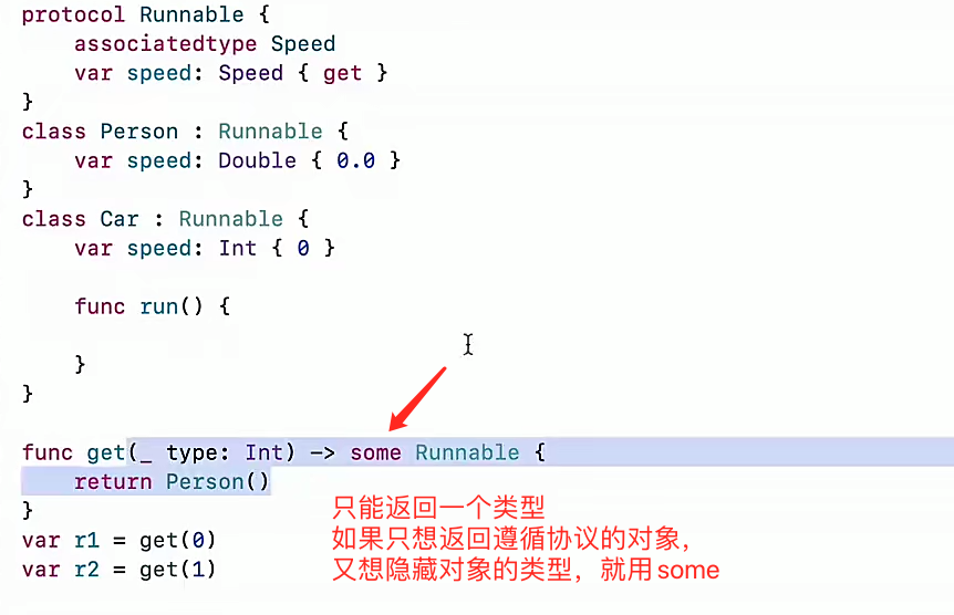 如果只想返回遵循协议的对象,又想隐藏对象的类型,就用some